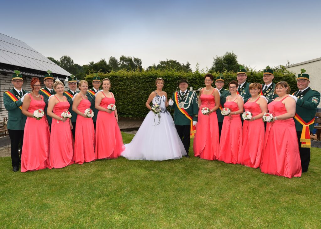 Hofstaat (von links): Sabine und Udo Okon, Kerstin und Reiner Simon, Petra und Frank Balzereit, Sabine und Lutz Theda, Karin und Gunnar Amedick, Sandra Dittrich-Wietfeld und Christoph Wietfeld, Irmgard und Matthias Lappe, Doris und Christian Werny