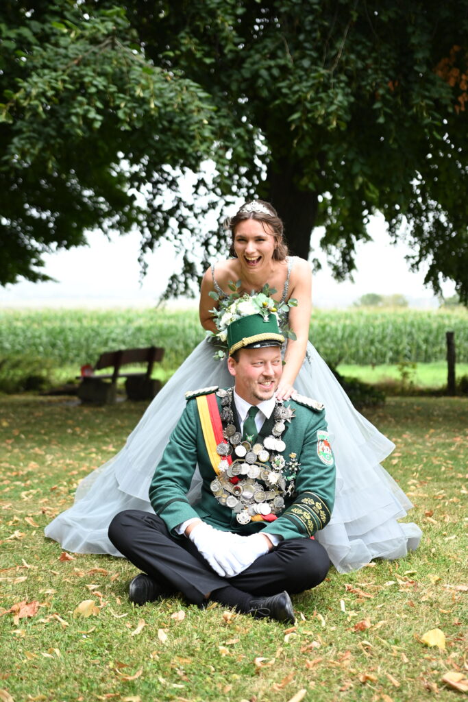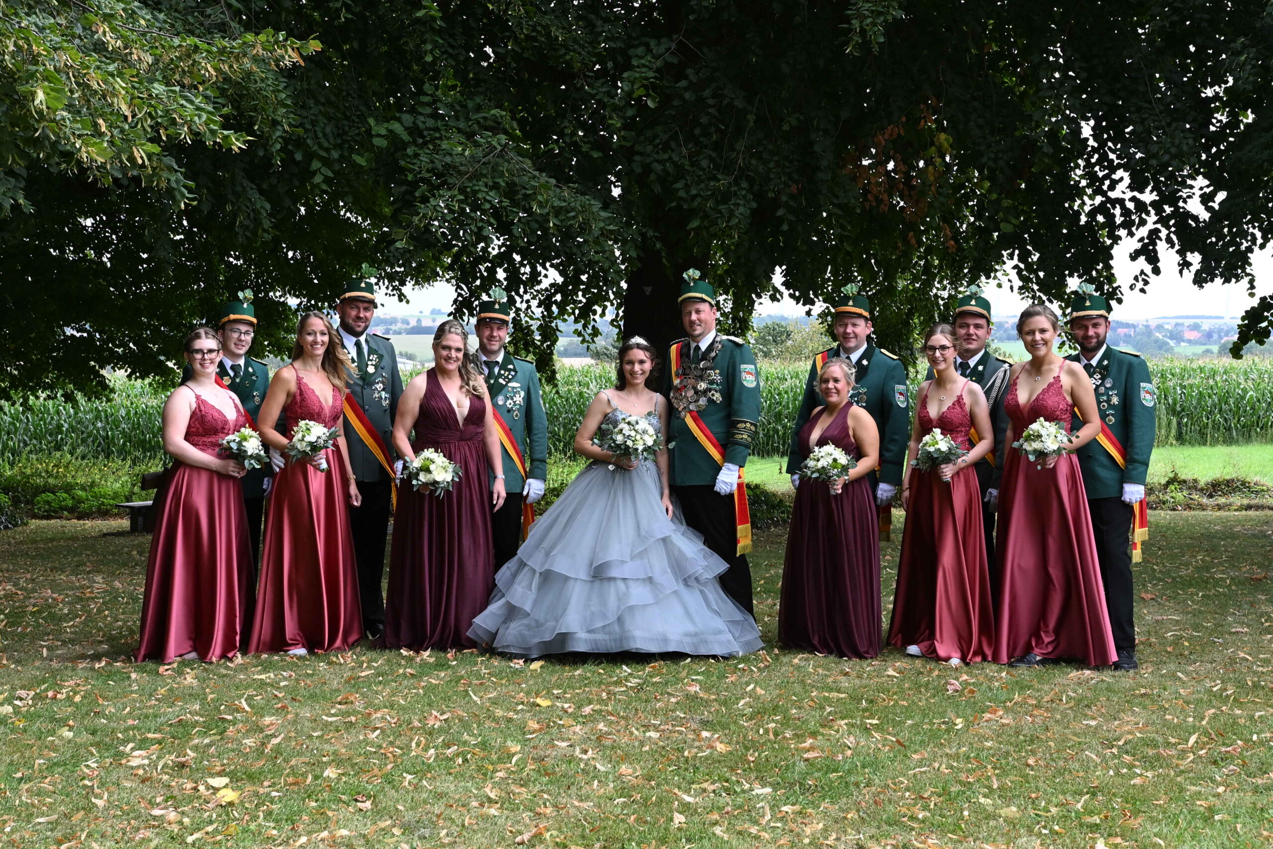 Hofstaat (von links): Elias Lüke und Mirja Seupt, Lars und Ann-Kathrin Albers Kreimer, Philipp und Michaela Tölle, Königspaar Josef Ekelt und Marie Fuchs, Michael und Tina Hölscher, Alexander Leifeld und Sophia Lüke, Steffen Simon und Julia Leifeld
